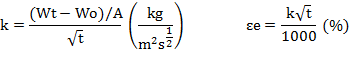 (3)El coeficiente puede ser evaluado como la pendiente de la región lineal del grafico (Wt – Wo)/A en función de