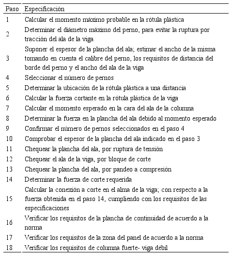 Para realizar el chequeo de la conexión tipo BFP conforme a la normativa AISC/ANSI 358-16 [5], se procede con la siguiente secuencia de pasos (ver Tabla 2)