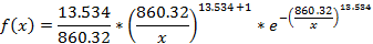 (5)Para la variable Agregado Fino los valores están en el rango 815,32 – 1016,94 Kg, su media es 916,13 Kg y su desviación 100,81 Kg. La distribución que mejor se ajusta a sus datos es la Weibull de 3 Parámetros, ésta es una curva Platicúrtica con asimetría negativa y su función de densidad de probabilidad es: