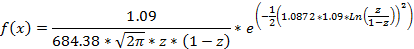 (9)Para la variable Fino los valores están en el rango 800,06 – 1032,62 Kg, su media es 916,34 Kg y su desviación 11,28 Kg. La distribución que mejor se ajusta a sus datos es la Johnson SB, ésta es una curva Platicúrtica con asimetría positiva y su función de densidad de probabilidad es: