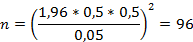 (1)Considerando un nivel de confianza del 0,95 y para un área bajo la curva de 0,025, se tiene que Z α/2 = ± 1,96. Bajo una distribución Binomial las probabilidades de éxito p y fracaso q, son p = q = 0,5. El error de estimación se tomó 0,05 como criterio del investigador ya que, generalmente fluctúa entre 0,04 y 0,06, según la teoría del muestreo. Sustituyendo los valores en la expresión anterior se obtiene: