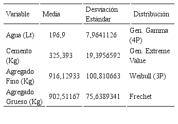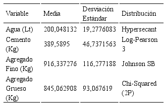 Determinación de la distribución de probabilidades de los componentes de mezclas de concreto