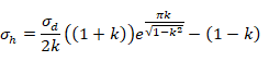 (14a)Si k es diferente a cero, como sucede en mezclas de granos duros con un aglutinante plástico, en las cuales además tiene importancia la fricción de los granos entre sí en el movimiento plástico del aglutinante, a mayor k se genera un aumento considerable de la relación sh/sd (ver Tabla 1).