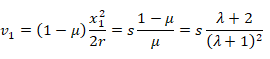(18)Siendo s’ el desplazamiento del pistón, en el cual la elevación inicia en el punto x, por lo que la superficie de presión tiene un radio x’ = x / l+1. De la ecuación 16, resulta para el correspondiente desplazamiento n1 a x = x1 (ver Figura 3) destacándose la Ec. 19: