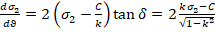 3. Si la condición del estado plástico no tiene la forma de la Ec. (1), es decir, la envolvente de la Figura 2 es curva, sigue siendo válido lo desarrollado en el punto anterior para los sectores de ángulo infinitesimal, pues el estado tensional es constante en cada radio y, en consecuencia, también la magnitud k. A parte de ello, se obtiene p.ej., derivando la Ec. 12 que: