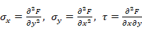 de esfuerzos F, función de esfuerzo Airy, entonces resulta de la Ec. 5 una ecuación diferencial de segundo orden de tipo hiperbólico, dado que siempre k< 1. Por este hecho, se justifica matemáticamente la posibilidad de llegar a la solución a partir de componentes individuales. Las características de la ecuación diferencial son las líneas de deslizamiento; por ello, cada uno de los componentes de la ecuación, están delimitados siempre por líneas de deslizamiento.