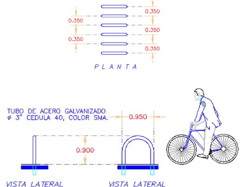 Se propone el diseño de estacionamiento para bicicletas visualizado en la Figura 12.