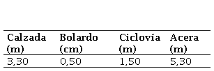 Se tiene una ciclovía unidireccional de tipo segregada con especificaciones reflejadas en la Tabla 5. Y con ancho de calzada y acera estimados en la Tabla 6.