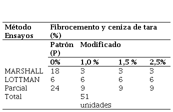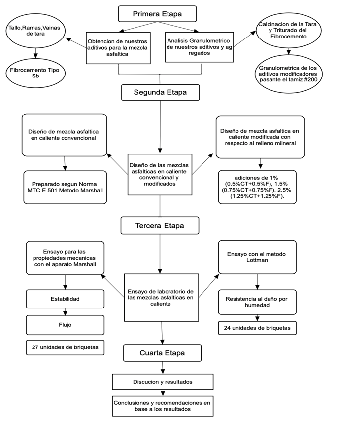 Por tanto, el objetivo general planteado en este artículo fue la de evaluar la influencia de las dosificaciones parciales de ceniza de Caesalpinia Spinosa y Fibrocemento en el desempeño mecánico y durabilidad de mezclas asfálticas para pavimentos flexibles. Específicamente, se analizó su efecto en la estabilidad, fluencia y densidad mediante el ensayo Marshall, y su resistencia a la humedad y daño por agua a través del ensayo de Lottman, considerando normativas y criterios de desempeño para mejorar la calidad y vida útil de las estructuras viales.
