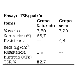 De acuerdo con la Tabla 10, el ensayo inicial demuestra un valor de TSR en 82,7%, lo que indica que a partir de ello se analizaran los cambios con los nuevos aditivos.