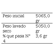 En la Tabla 3 se identifica que, para la muestra ensayada, se siguieron los pasos que mencionan las Normas, estas indicaciones dadas manifiestan que previo al experimento las características de la muestra deben ser tal y como se encuentran in situ, para así determinar y hallar su peso inicial y peso después de un lavado y secado.