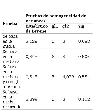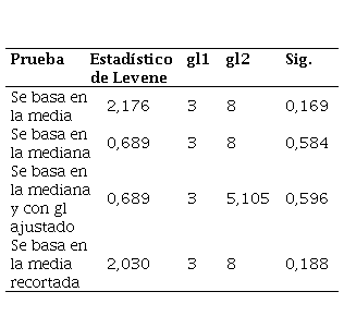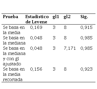 La Tabla 5 muestra los resultados de la prueba de homogeneidad de varianzas