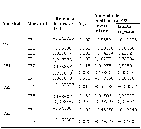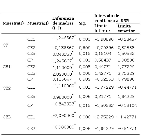 La Tabla 12 muestra el análisis post hoc de Tukey.