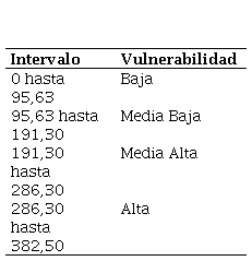 Se estudió el índice de vulnerabilidad (Iv) obtenido de la evaluación de los 11 parámetros en el pabellón de la institución (ver Tabla 1).