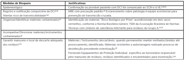 No Brasil, o controle para o processamento de materiais utilizados em pacientes com suspeita clínica de DCJ ou DCJ variante segue a Resolução da Diretoria Colegiada (RDC) número 306 da Agência Nacional de Vigilância Sanitária (ANVISA).10 O quadro 2 apresenta as MBE adotadas pelos profissionais em um hospital de referência do sul do Brasil .11