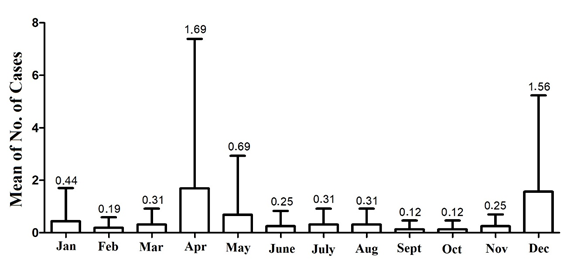 In the analysis of seasonality, the months of April and December presented the highest annual means in the research period (Figure 1).