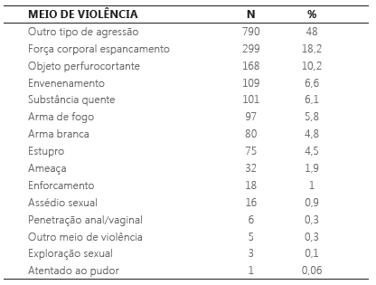 O meio utilizado para violência é descrito na tabela 3, a seguir: