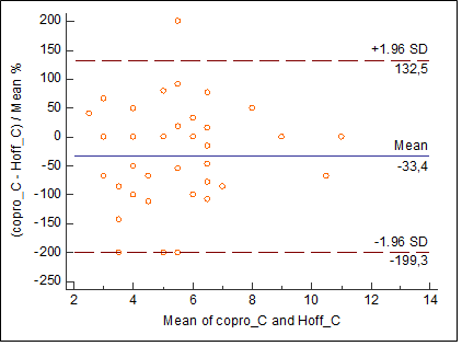 Ao compararmos os métodos Coproplus® e HPJ, constatamos que a diferença de sensibilidade é de 4%; esse valor nos dá a ideia da funcionabilidade de ambas metodologias, de modo que os métodos são aprazíveis dentro das aplicações laboratoriais.
