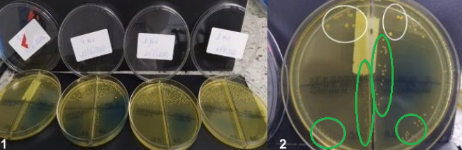 Microbiological tests were done in the microbiology laboratory of a high complexity hospital located in the city of Belo Horizonte, Minas Gerais. The aim was to demonstrate the bactericidal effect of ultraviolet light through the exposure of newly seeded plates with microorganisms used for quality control of culture media in order to infer the ability to deliver energy of UVC radiation specifically (two 18W lamps each). In this experiment, four bipartite Cled plates were inoculated with 10,000 cfu/mL suspensions of Escherichia coli (ATCC 25922) and Staphylococcus aureus (ATCC 29213) strains on each side and then placed inside a laminar flow of radiation and covered with aluminum foil in such a way that the upper half of each seeded area was protected from light exposure. The first plate was exposed to light for only 1 minute, the second for 2 minutes, the third for 4 minutes and the fourth plate for 8 minutes. Plates were incubated for quantitative growth assessments after 12, 24 and 48 hours.