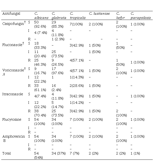 †There is no CLSI defined breakpoints for C. kefyr and C. lusitaniae, breakpoints for C. tropicalis was applied
