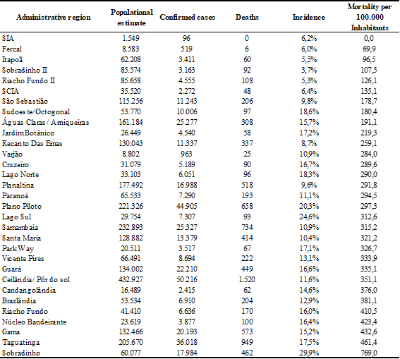 Incidence and lethality by COVID-19 in the population of the Federal District: an ecological study