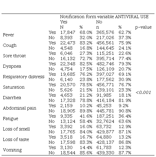 With the data presented, a patient profile more conducive to hospitalization, need for invasive or non-invasive ventilation and death from SARS can be visualized. This profile can be used as a basis for the preparation of screening protocols in health units, as well as updating treatment guidelines for patients with SARS in their various presentations.25 An association can also be observed between prescription of Zanamivir and Oseltamivir and lower rates of hospitalization and death, as well as less need for invasive and non-invasive ventilation, suggesting the use of these neuraminidase inhibitors as a treatment for patients at risk as well as a public health tool to reduce the rate of bed occupancy in the healthcare system.