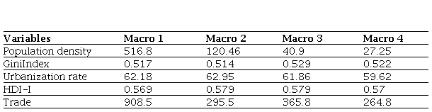 In order to differentiate the macroregions (MR) in relation to socioeconomic characteristics, a table was created with data on population density, Gini index, urbanization rate and number of commercial buildings.