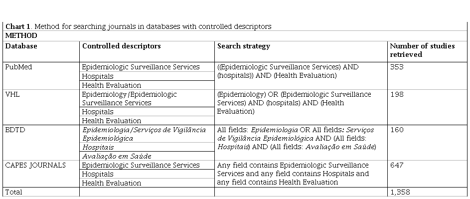 The following DeCS terms were used with the combined search strategies and the Boolean operators OR and AND (Chart 1):