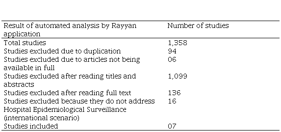 The process of selecting and organizing the inclusion and exclusion of articles was carried out using Rayyan application, where titles and abstracts were read, duplicates were excluded, the reasons for exclusion were categorized, and the articles were selected for full reading.