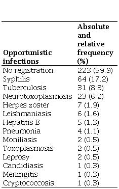 In terms of opportunistic infections, about 60% were unrecorded, of which syphilis, tuberculosis and neurotoxoplasmosis were the most common in the patients studied.