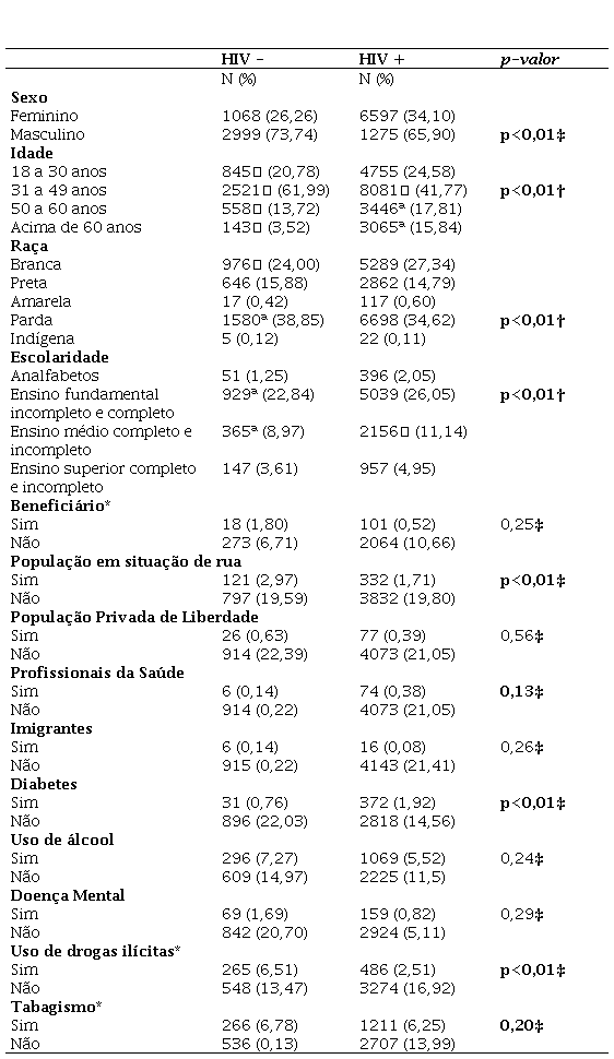 HIV+ = presença do Vírus da Imunodeficiência Humana