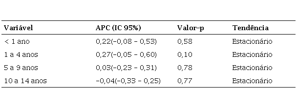 Ao analisar a regressão de Prais-Winsten, é possível identificar que a tendência temporal se apresentou estacionária para todas as variáveis de análise (Tabela 3).