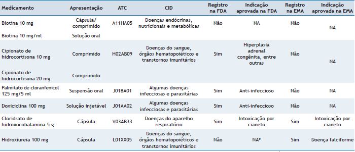 Foi ainda verificada a presença de registro desses medicamentos junto às agências reguladoras sanitárias americana Food and Drug Administration (FDA) e europeia European Medicines Agency (EMA), a partir dos seus endereços eletrônicos14,15.