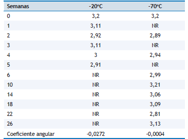 Nesse estudo foi utilizado o método de liofilização para preservação da bactéria. Esse método se destaca para a maioria dos micro-organismos por garantir a identidade original da célula por longos períodos26. A inspeção de vácuo realizada no presente trabalho exibiu vácuo em 100% dos frascos do lote produzido. Outros trabalhos que utilizaram o método de liofilização também mostraram seus resultados da inspeção de vácuo, como Costa et al.13, Brandão et al.14 e Brandão et al.16 em 96,5% dos frascos produzidos em matriz queijo, em 98,2% em matriz queijo e em 94,2% em matriz carne bovina, respectivamente.