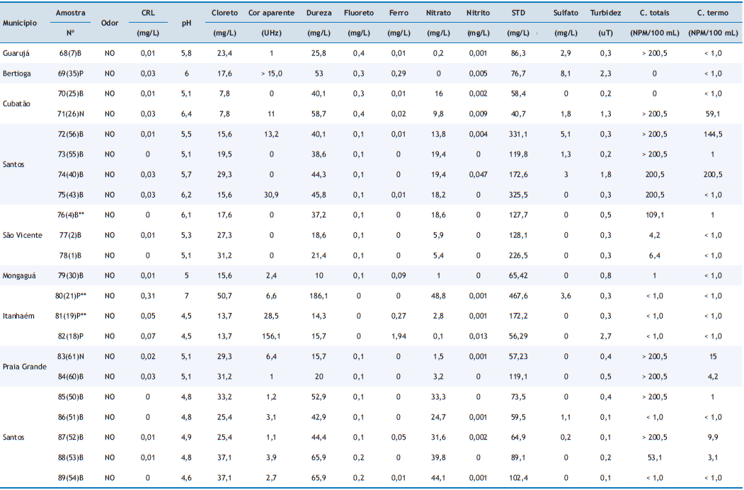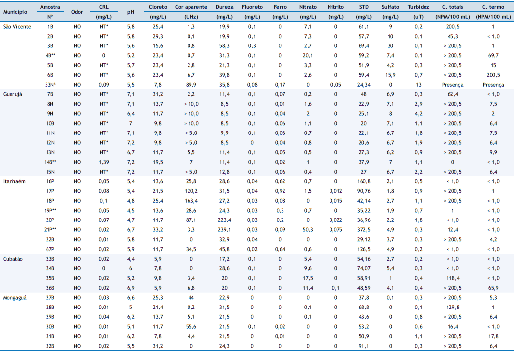 Avaliação físico-química e microbiológica de águas procedentes de soluções alternativas de abastecimento na Região Metropolitana da Baixada Santista, Estado de São Paulo, Brasil