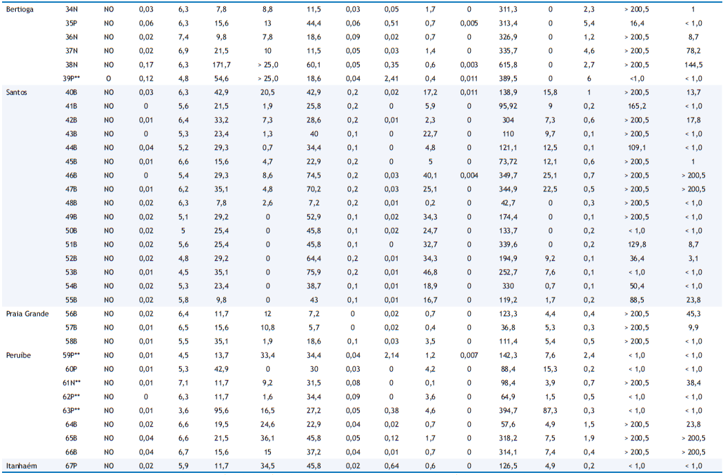 Os resultados obtidos nas análises das 67 amostras coletadas na primeira etapa encontram-se na Tabela 1 .