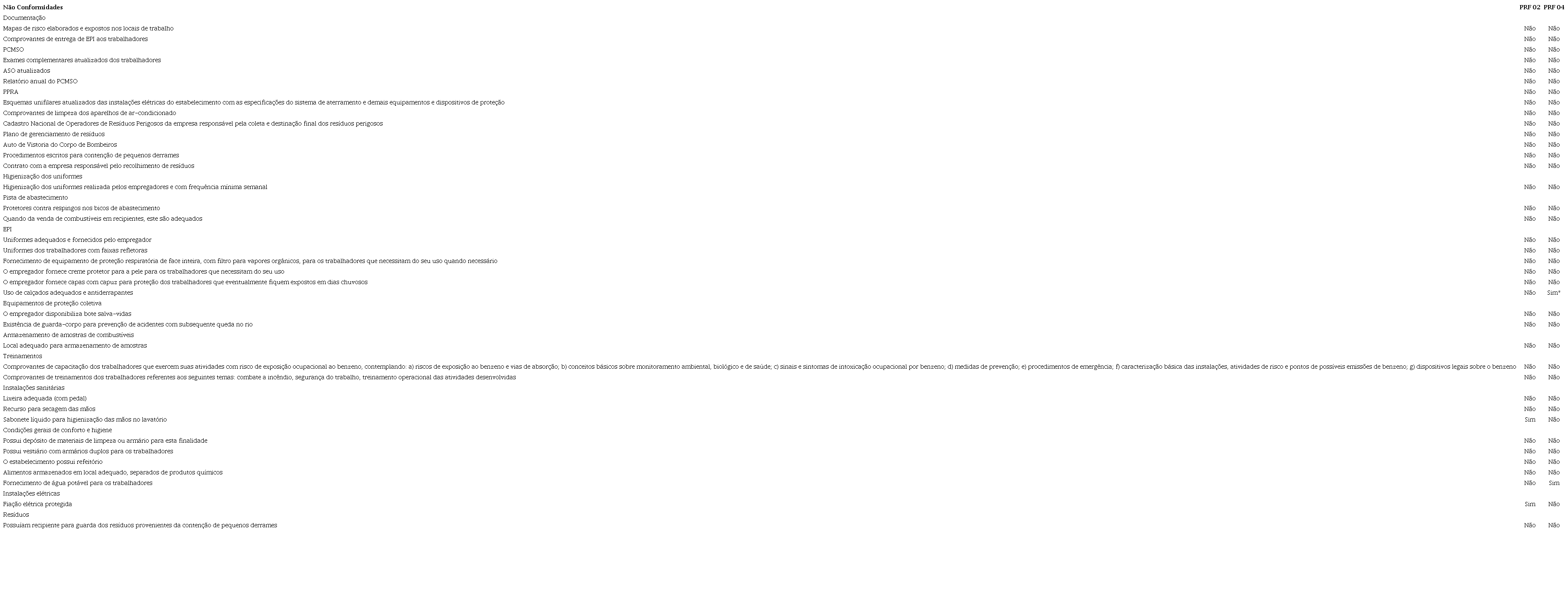 Resultados: Foram analisados: as especificidades dos PRF; as não conformidades encontradas; os relatos dos trabalhadores e as medidas adotadas para mitigação dos riscos identificados. Certas não conformidades são semelhantes às relatadas nos PRCA e se somam a outras decorrentes das especificidades dos PRF. Precárias relações e situações de trabalho foram encontradas e houve relato de queixas possivelmente relacionadas à intoxicação por benzeno.