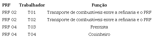 Havia quatro trabalhadores em cada PRF no momento da inspeção, todos do sexo masculino, e dois foram entrevistados em cada estabelecimento. O Quadro 2 apresenta os trabalhadores entrevistados, seus locais de trabalho e funções.