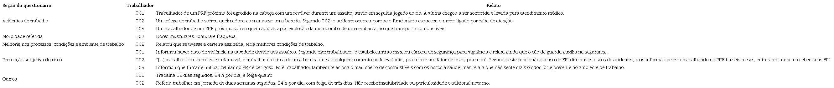 O Quadro 3 apresenta as respostas dos trabalhadores para cada seção do questionário.