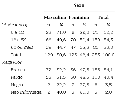 Diferentemente da maioria dos estudos que afirmaram ser os idosos a classe mais susceptível às RAM devido a alterações fisiológicas que determinam mudanças farmacocinéticas e farmacodinâmicas, no presente trabalho, o grupo etário que apresentou o maior número de RAM foi o de 19 a 59 anos (54,5%), prevalecendo a raça branca (54,1%) ( Tabela 2 ). Contudo, os idosos também tiveram grande participação nos episódios de RAM, representando 33,3% dos casos.