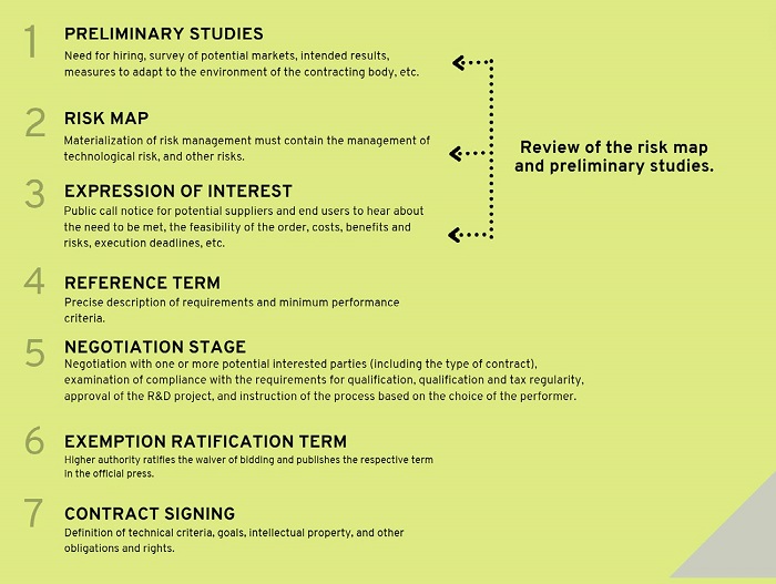 ETEC is fundamentally a public purchase used when solutions to emergency demands are needed where there is still no consolidated technological solution and, therefore, the technological risk is high. ETEC is anchored in a legal framework initiated by Law No. 8,666/1993 (art. 24, item XXXI), art. 20 of Law No. 10,973/2004 and by section V of Decree No. 9,283, of July 2, 201818,19,27.