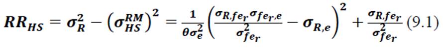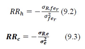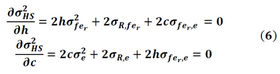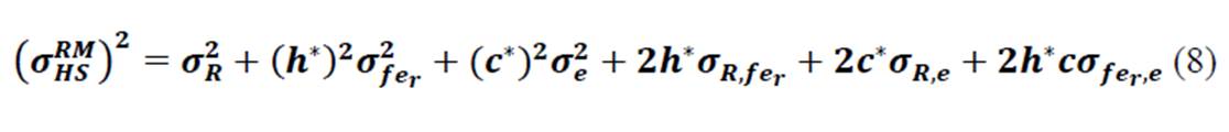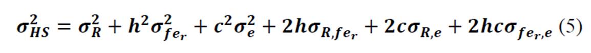 Where the variances are given by 𝜎2 = 𝑉𝑎𝑟(𝑅); 𝜎2 = 𝑉𝑎𝑟(𝑓𝑒𝑟); 𝜎2 = 𝑉𝑎𝑟(𝑒); and the covariances are 𝜎𝑅,𝑓𝑒𝑟 = 𝐶𝑜𝑣(𝑅, 𝑓𝑒𝑟); 𝜎𝑅,𝑒 = 𝐶𝑜𝑣(𝑅, 𝑒) e 𝜎𝑓𝑒𝑟,𝑒 = 𝐶𝑜𝑣(𝑓𝑒𝑟, 𝑒).
