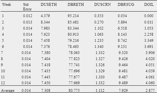 Table 4 – Decomposition of variance for Brazilian ethanol prices (%)