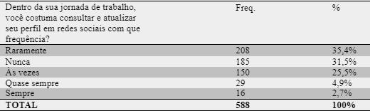 Tabela 7 – Acesso e atualização do perfil durante a jornada de trabalho