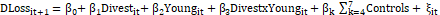 With regard to Equation 2, to isolate the effect of divestments made by companies with financial constraints from these estimates, these estimates were considered in Equation 2 through the control variables