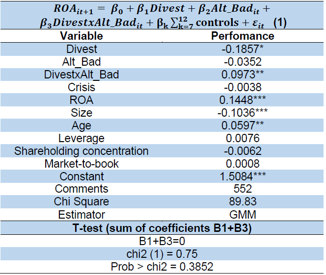 In Equation 2, the potential contribution of asset divestments in reversing past losses into future profits was tested.