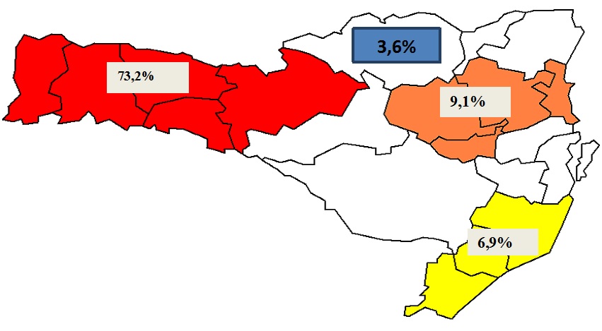 A Figura 2 apresenta a situação atual da produção e a participação da região na produção total de Santa Catarina, revelando a pouca expressão no contexto. Mas, a Figura 3 revela o grande potencial para a produção leiteira que a região apresenta, tanto com aumento da produtividade, como através da expansão das áreas de pasto e do número de propriedades. O grande potencial que se apresenta de forma diferenciada, constituem áreas de pastagens naturais e de sistemas agroflerestais, que somam mais de sessenta e cinco mil hectares, que, segundo pesquisas realizadas pela Epagri, revelam o grande potencial produtivo de pastagens, desde que adotadas as tecnologias apropriadas para estas áreas e já disponíveis.
