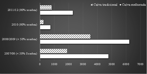 No entanto, o parâmetro fundamental, sem dúvida, para a tomada de decisão sobre qual área de caíva deve ser melhorada, é o nível de sombreamento, sendo que áreas com alta densidade de árvores e sombreamentos acima de 50% não devem ser utilizadas com esse fim.