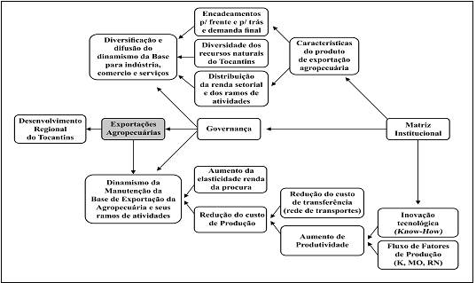 A base de exportação, a matriz intitucional e a governança podem condicionar a capacidade do Estado do Tocantins a se desenvolver, agregando os pequenos municípios que estão fora do núcleo do centro dimânico de base diversificada.