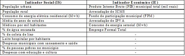 O Índice de Desenvolvimento Regional (IDR), construído com base em indicadores sociais e econômicos, mostra o grau de desenvolvimento em que cada município se encontra. Foi dado maior peso para o indicador econômico, pois o município com melhor situação econômica tem melhores condições para investir em saneamento básico, educação e saúde, sem contar a capacidade de gerar empregos e, assim, melhorar seu indicador social. A estimativa do IDR utiliza as variáveis expostas no Quadro 1.